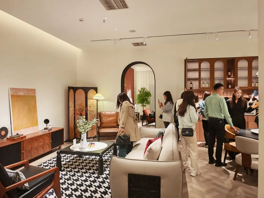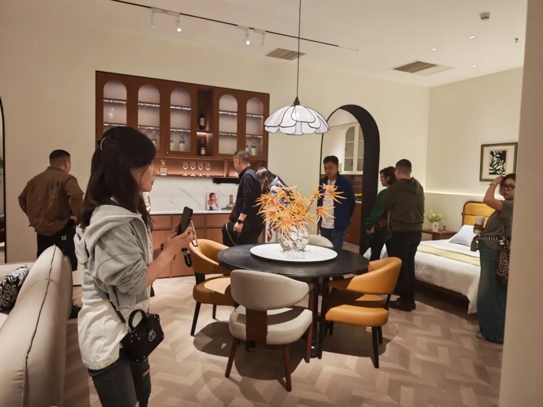 新品發(fā)布品鑒會(huì)現(xiàn)場,我們中古全案憑借獨(dú)特的空間布局,創(chuàng)新的時(shí)尚設(shè)計(jì),優(yōu)質(zhì)的材料細(xì)節(jié)以及精心的場景營造,吸引了全國優(yōu)秀經(jīng)銷商及業(yè)界嘉賓們的目光,他們沉浸在高級的美學(xué)世界里,感受創(chuàng)新與品質(zhì)交織的魅力。我們中古展廳里人潮涌動(dòng),眾多經(jīng)銷商都對中古全案新品的創(chuàng)新設(shè)計(jì)稱贊有加,現(xiàn)場簽約不斷,氣氛熱烈。