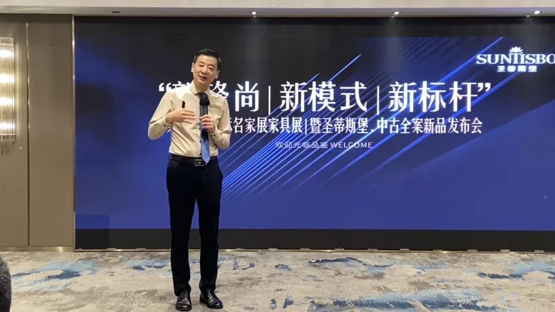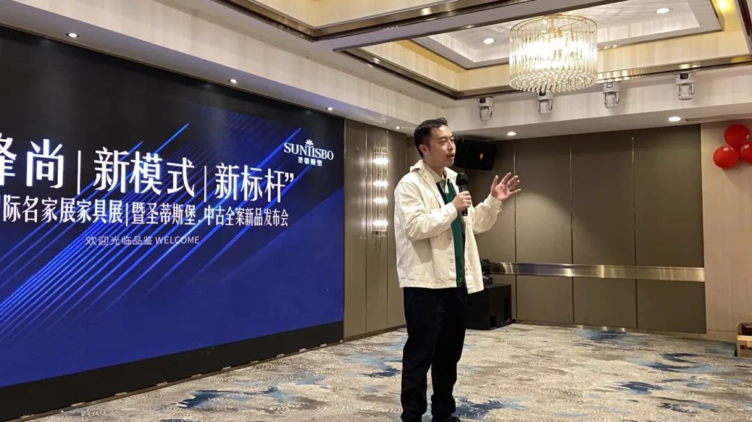 接下來,我們工業(yè)營銷部副經(jīng)理吳天喜先生為我們重磅揭曉了2025春季新品中古全案系列和新古典全案升級新品,他從選材、設(shè)計(jì)、風(fēng)格、工藝等方面進(jìn)行了全面的講解,并提到此次中古新品的全案模式是以更具設(shè)計(jì)感的創(chuàng)新方式,給予消費(fèi)者整體性的體驗(yàn)感升級,助力大家在激烈的市場競爭中,突顯差異化的優(yōu)勢,實(shí)現(xiàn)業(yè)績的飛躍式增長。