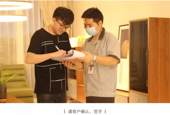 產品安裝確認無誤后及時清理房間內因安裝產生的垃圾并保持空氣流暢,然后用干凈的抹布將家具擦拭一遍,確保產品清潔,用吸塵器對安裝環境進行清理,并對所有安裝好的產品拍攝記錄作為完工效果備案。